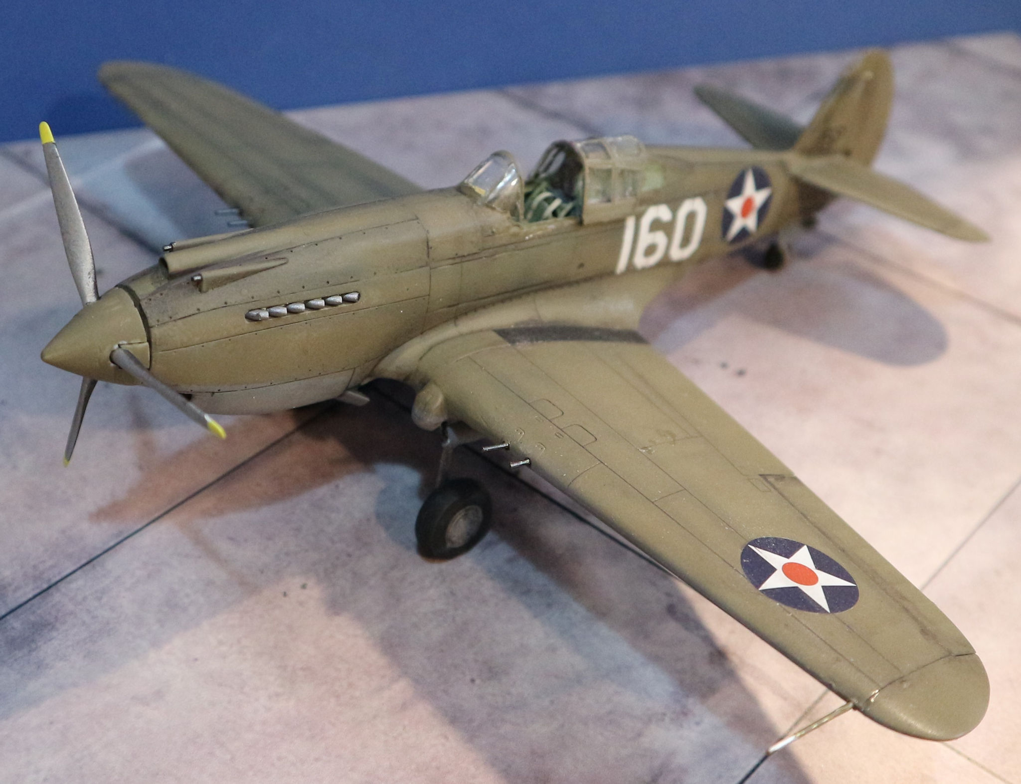 The P-40 was fitted with an Allison V-1710 V-12 engine giving a top speed of 334mph. It was quite well armed with six 0.5 Browning machine guns and could cary a modest bomb load of about 900Kg on three hardpoints.