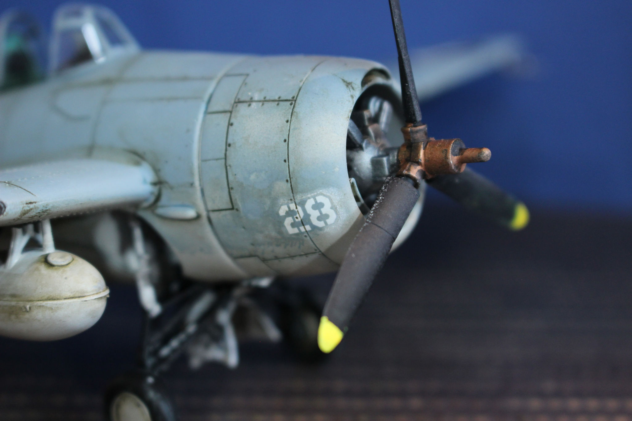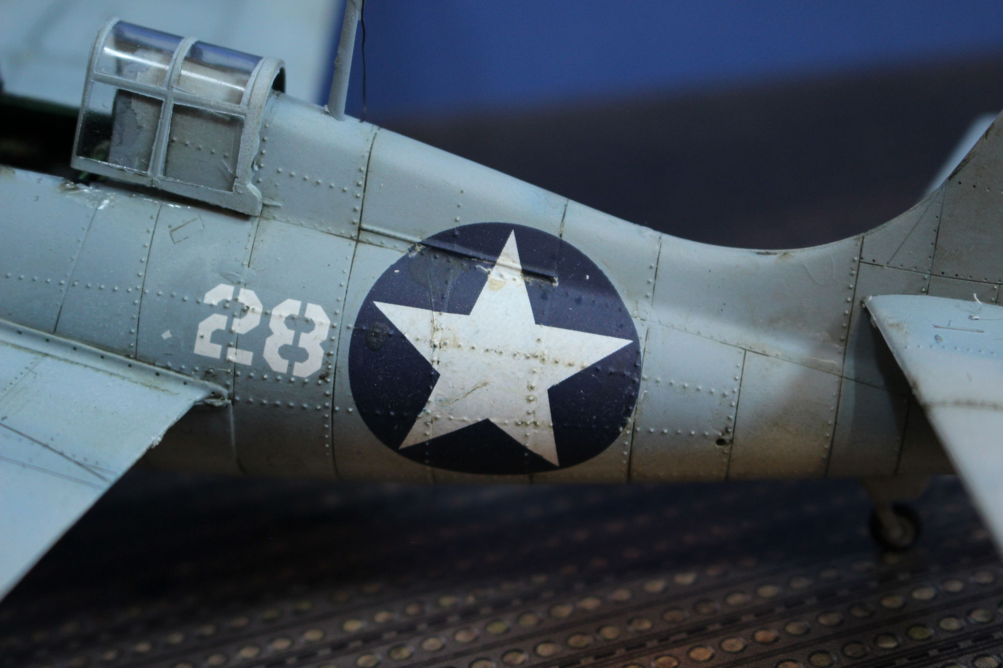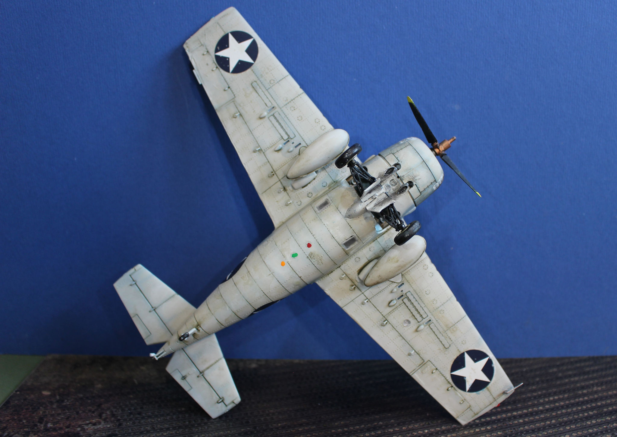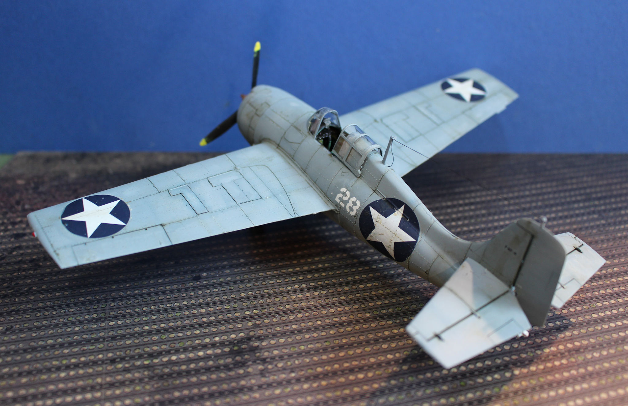 Along with the US forces the Wildcat was also used by other allies, including the Royal Navy where it was known as the Martlet. The prototype first flew in 1937 with a follow on aircraft, with problems fixed flying in Februarty 1939. Early air raft had fixed wings with a folding mechanism added in the F4F-4 version, This folded the wing alongside the fuselage.