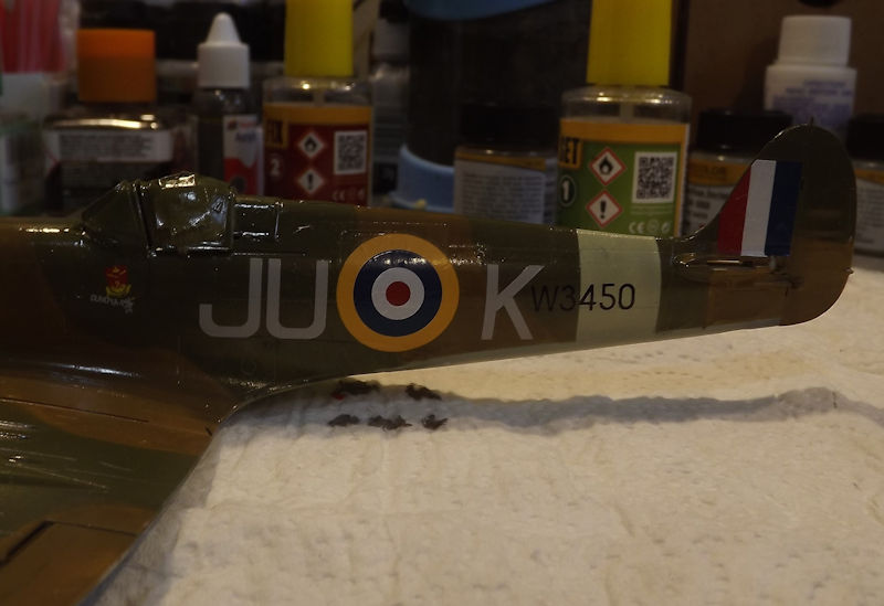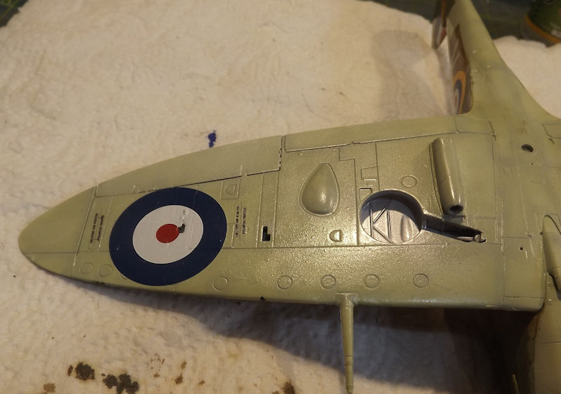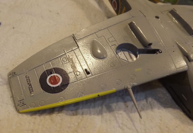 I used the kit decals for the clipped wing aircraft. The decsls are terrible and didn't want to come off the backing paper without soaking in hot water. The under wings get a roundel, some support points and some electronics warnings.