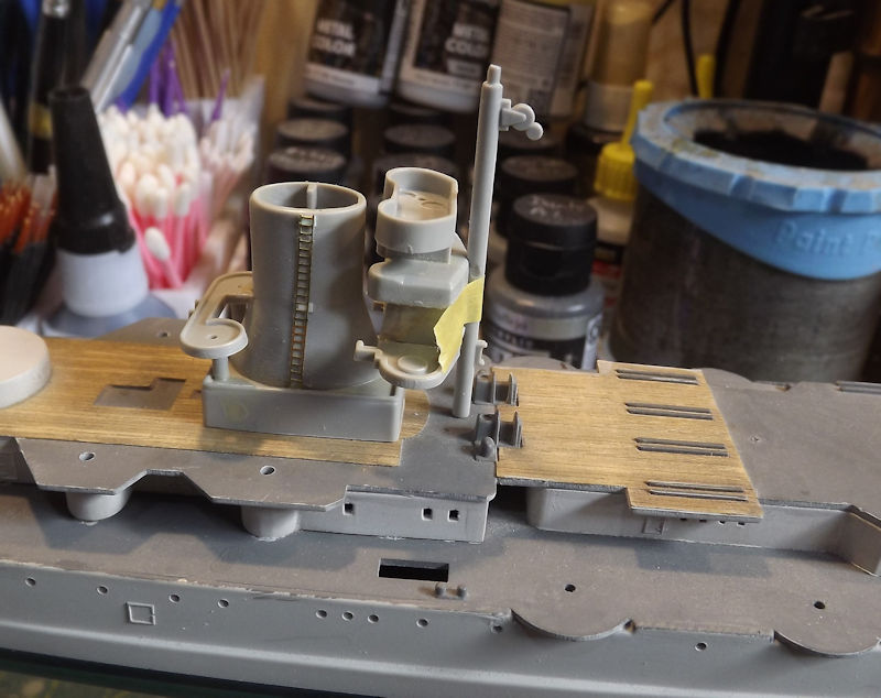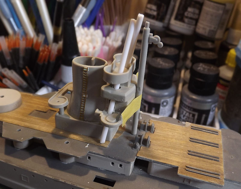 I had planned on starting to paint the superstructure but on looking at references I noticed some missing support masts.