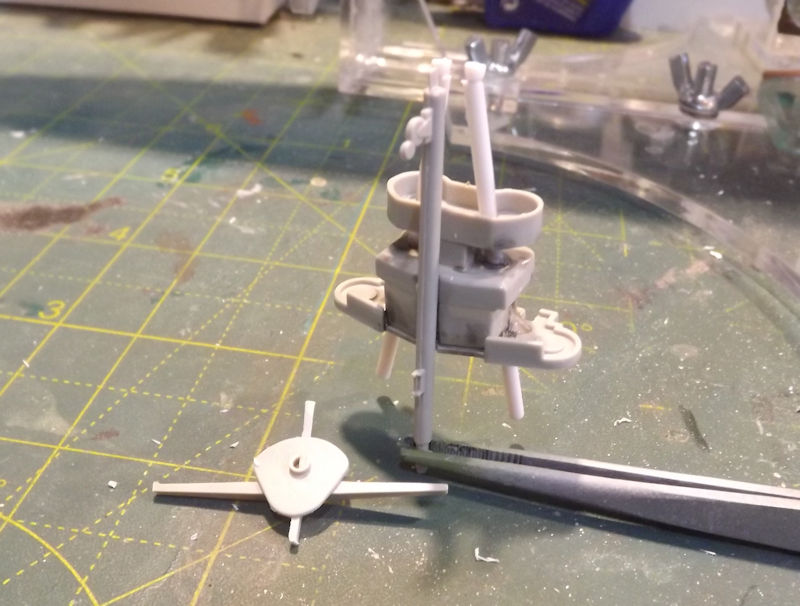 I taped the rear spotting structure to the mast. As can be seen, the structure just hovers which is wrong. The mast should actually be a tripod mast.