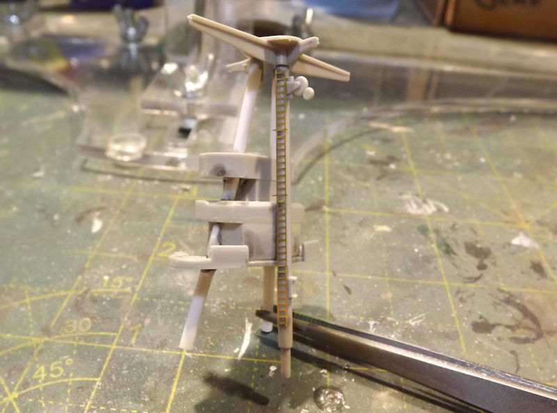 Access to the spotting platform is via a long ladder. A full length of photo etch ladder from White Ensign was glued to the mast.