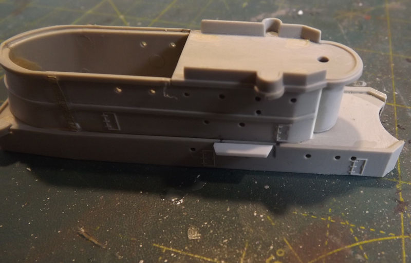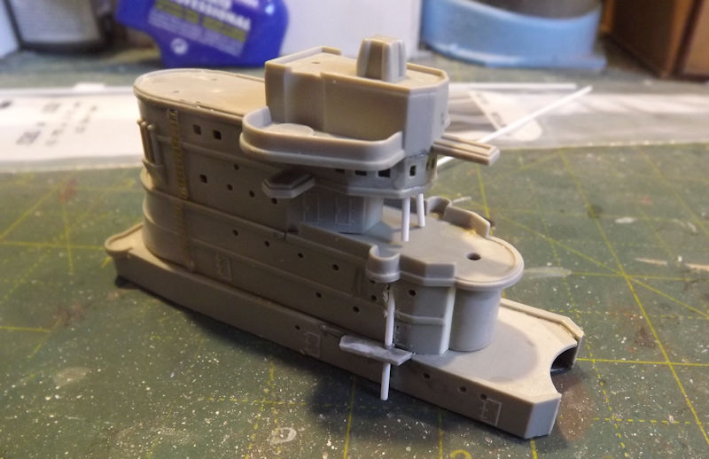 Dry fitting the turrets and suprtstructure. Looks like a boat.