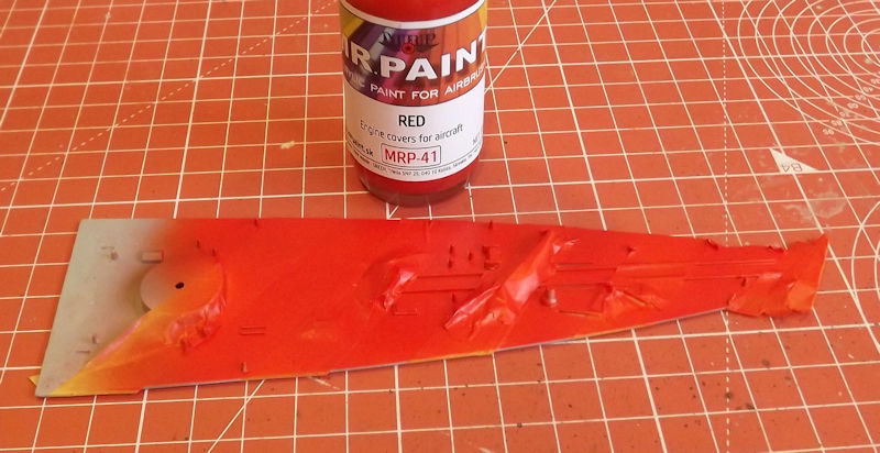 The deck was painted with a couple of light coats of MRP-41 Red from Mr Paint, and left to dry.