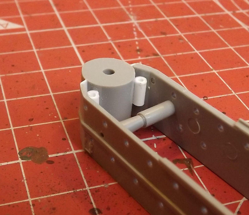 To add strength to the joint, some styrene tube was glued into place. The joint at the rear of this section needed a little filling, with styrene filler, and gentle sanding.
