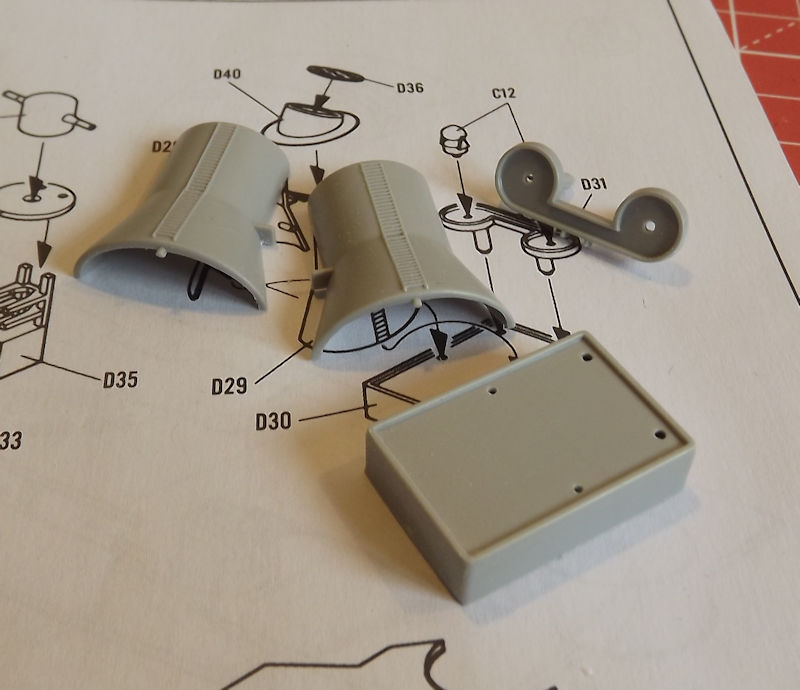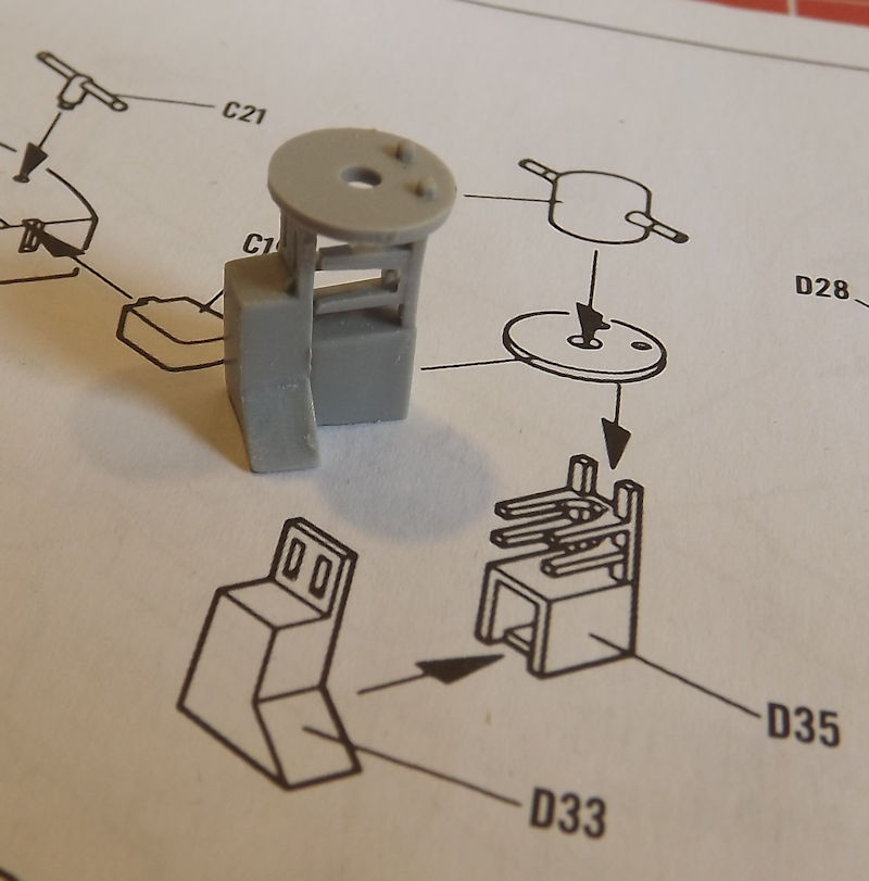 The director platform glues in alright, but the funnel needs some filling and sanding. Some styrene filler has been run up the join, and when set, it will be sanding back.