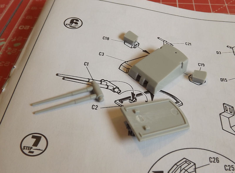 In front of the director tower, is the aft funnel base. This is made of a superstructure section, which a director platform and two part funnel. The funnel cap needs painting black, so will be added after painting.