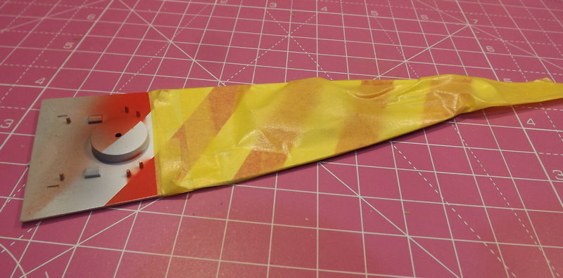 The red and white stripes were masked ready for painting.