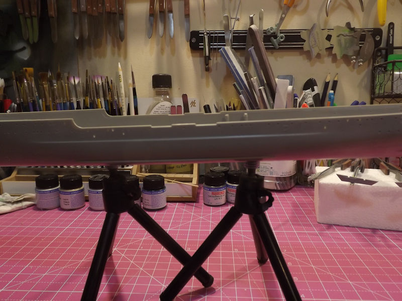 I inverted the tripods for painting. Everything was primed in white.