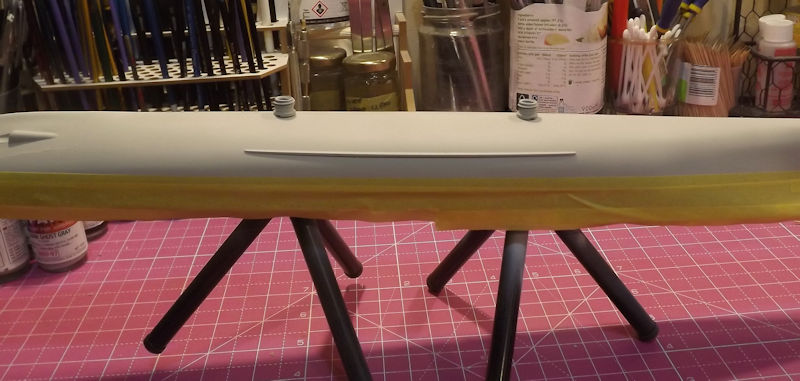 The upper half of the hull was masked ready for the next step.