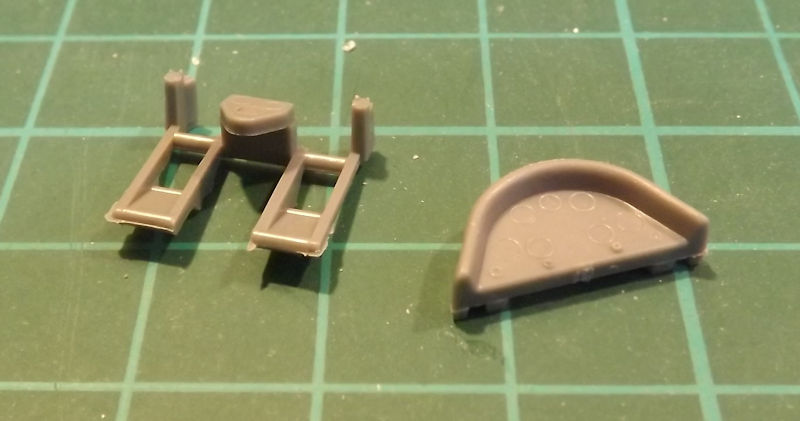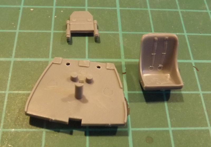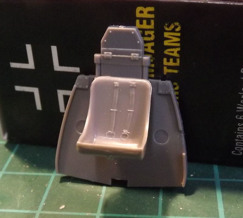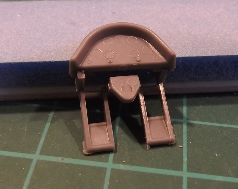 There are two seats in the kit, this one and one with a rounder top. The chosen scheme also has a headrest for the pilot. Two holes need drilling to mount the headrest.