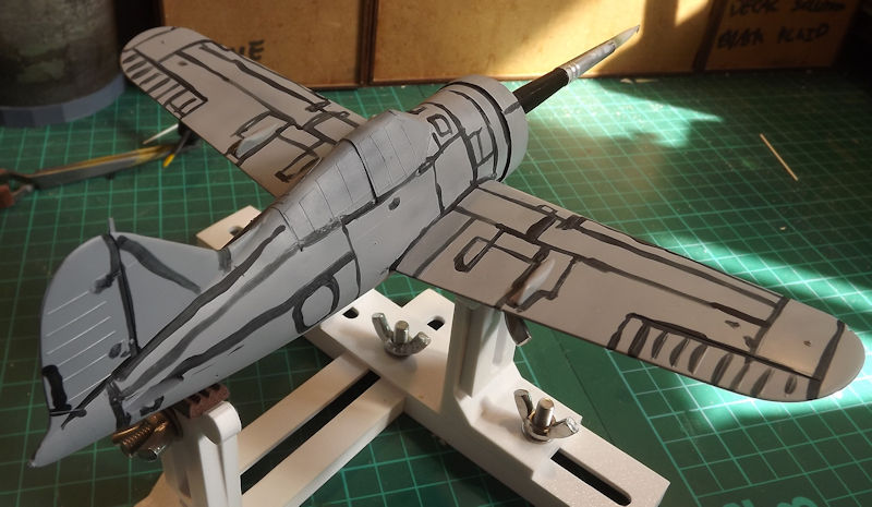 I've recently seen someone pre-shading using black wash and decided to try something similar by brush painting the panel lines with black.