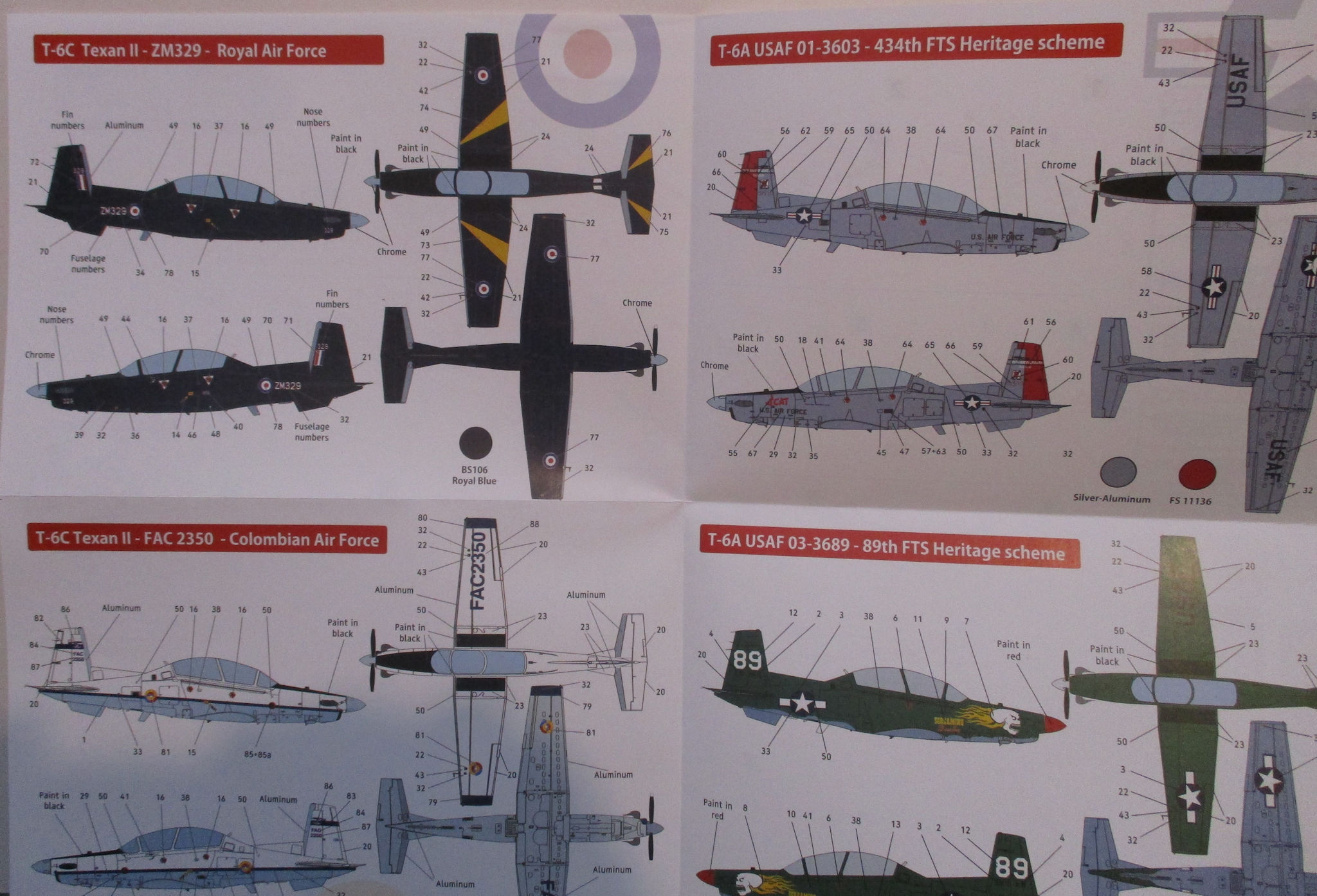 There are decals for the instruments, the T-6A on the right and the others from the T-6C.
